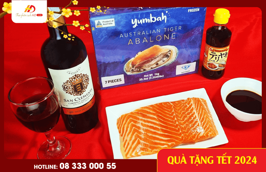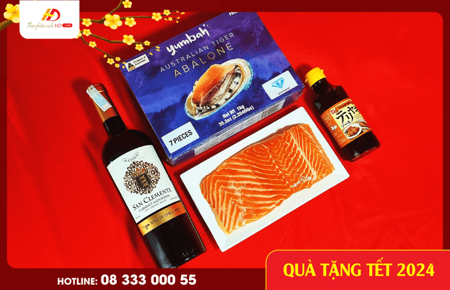 Trong set quà này, chúng tôi mang đến sự hòa quyện giữa hương vị tinh tế và chất lượng cao cấp với cá hồi Na Uy tươi ngon, với thịt ngon và giàu axit béo omega-3. Đồng thời, bào ngư Úc được chọn lựa kỹ lưỡng, đảm bảo vị ngon tuyệt và chất lượng an toàn.