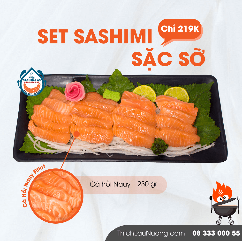 | 1 | Sashimi Cá Hồi | Cá hồi phi-lê 230gr |